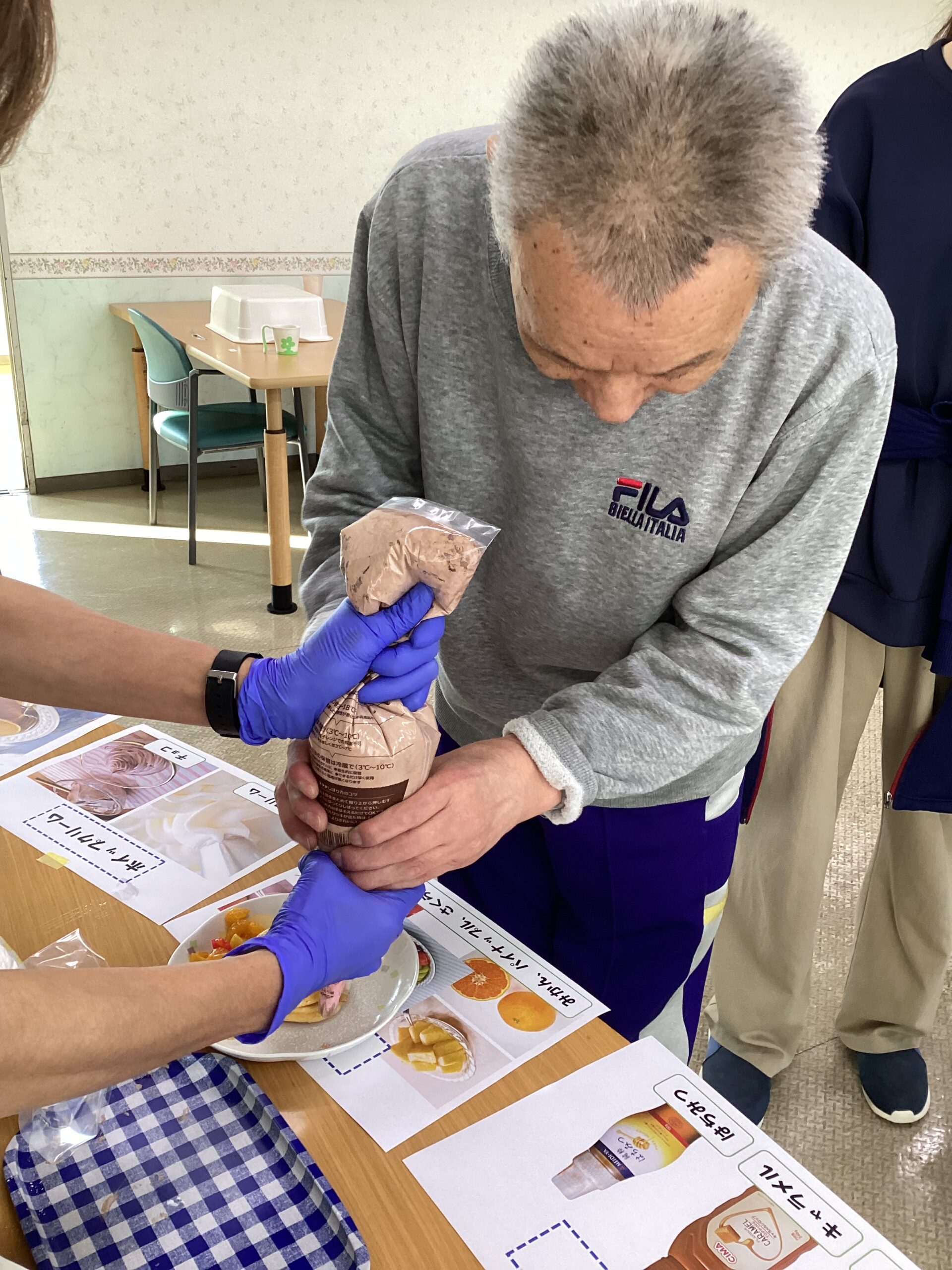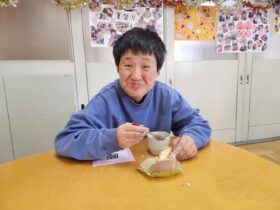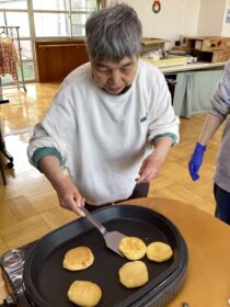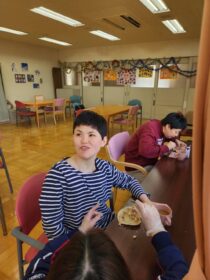 いつもの調理実習より、事前準備が必要なのと利用者さん自身に行ってもらう工程が多い為時間がたくさんかかりましたが、笑顔いっぱいの楽しい調理実習になりました。