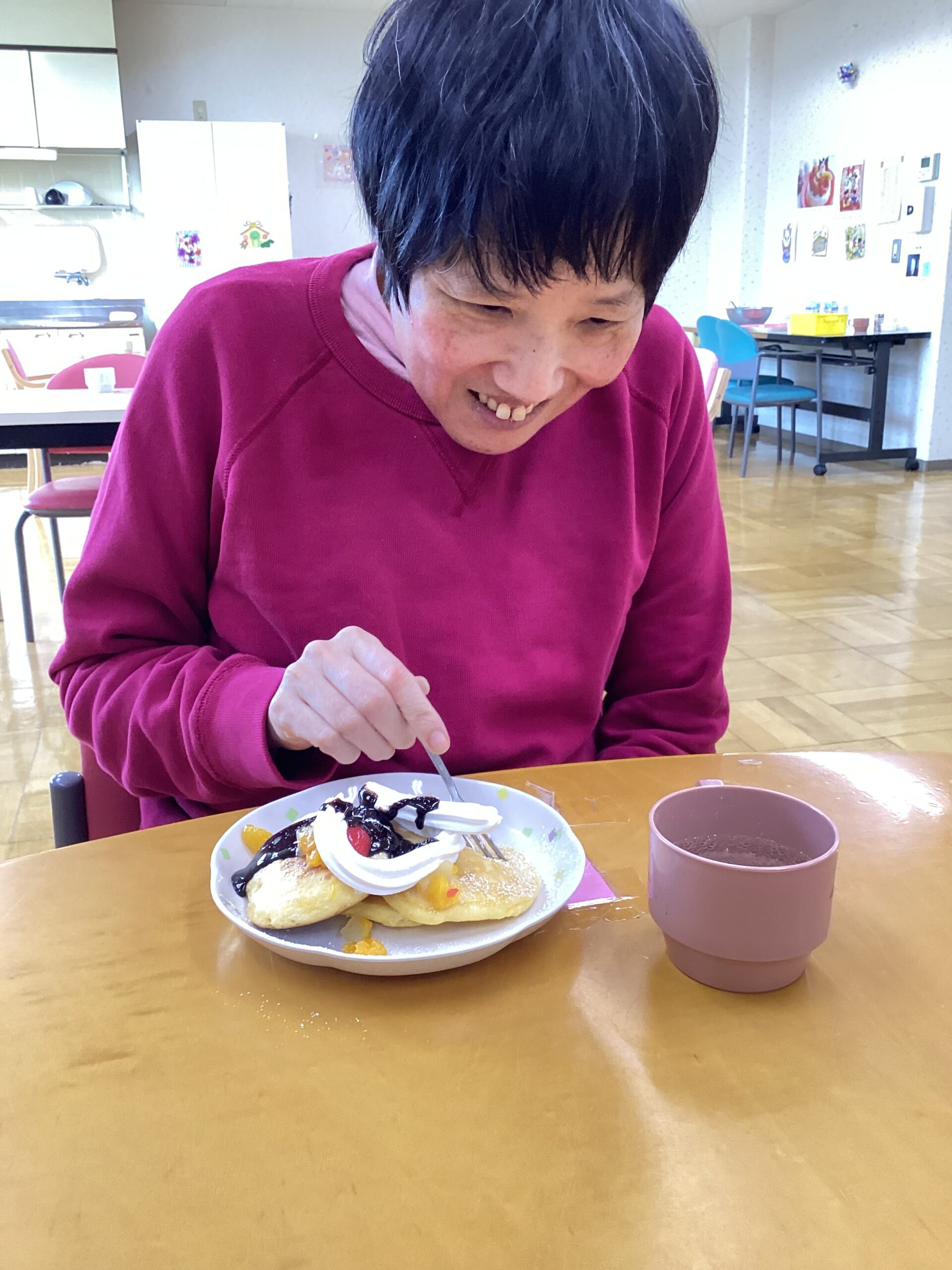 ↑思い思いのパンケーキができあがりました!笑顔いっぱいのデザートデイ♪♪
