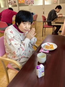かたかご苑の利用者さんはプレゼントより食べることの方が好きだそうです。