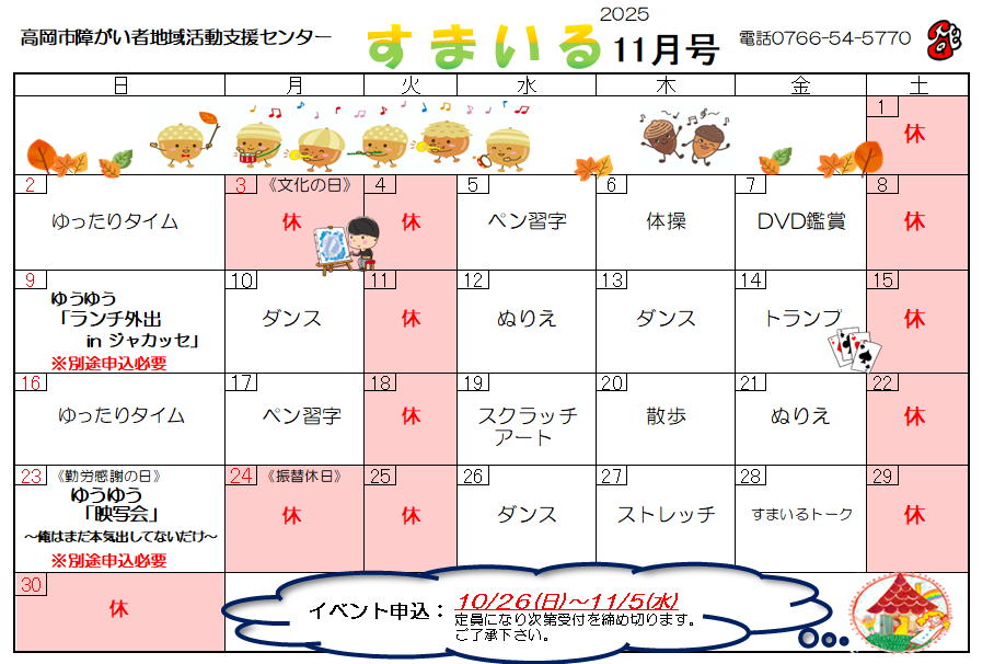 イベントの申込期間は、10/26(日)~11/5(水)です。